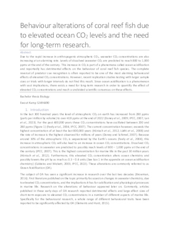 Kamp, E. (2023) Behaviour alterations of coral reef fish due to elevated ocean CO2 levels and the need for long-term research. Bachelor's Thesis, Biology.