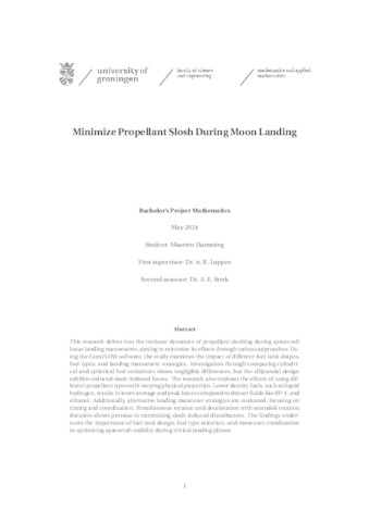 Hamming, Maarten (2024) Minimize Propellant Slosh During Moon Landing. Bachelor's Thesis, Mathematics.