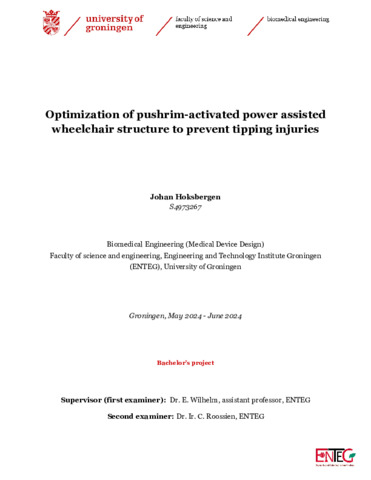 Hoksbergen, Johan (2024) Optimization of pushrim-activated power assisted wheelchair structure to prevent tipping injuries. Bachelor's Thesis, Biomedical Engineering.