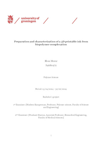 Morar, Rhea (2024) Preparation and characterization of a 3D printable ink from biopolymer complexation. Bachelor's Thesis, Biomedical Engineering.