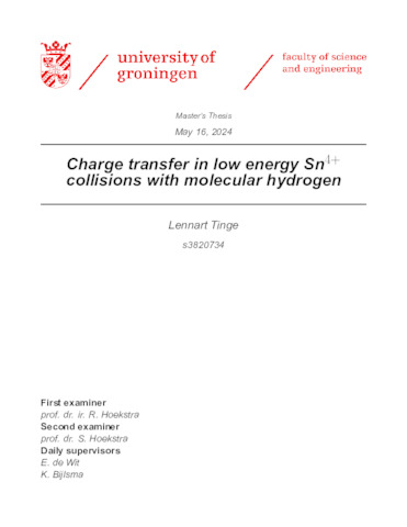 Tinge, Lennart (2024) Charge transfer in low energy Sn4+ collisions with molecular hydrogen. Master's Thesis / Essay, Applied Physics.