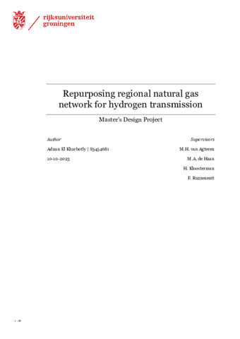 El Kharbotly, Adnan (2024) Methodology & case study of the conversion of a regional mid pressure natural gas network for hydrogen transmission. Design Project, Industrial Engineering and Management.