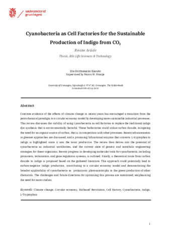Gormezano Kasuto, Iris (2024) Cyanobacteria as Cell Factories for the Sustainable Production of Indigo from CO2. Bachelor's Thesis, Life Science and Technology.