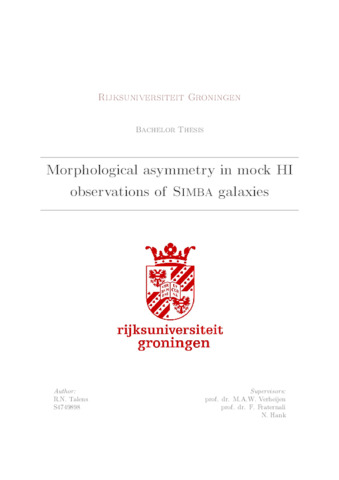 Talens, Rutger (2024) Morphological asymmetry in mock HI observations of Simba galaxies. Bachelor's Thesis, Astronomy.