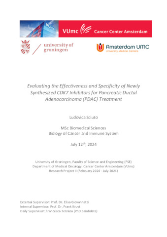 Sciuto, Ludovica (2024) Evaluating the Effectiveness and Specificity of Newly Synthesized CDK7 Inhibitors for Pancreatic Ductal Adenocarcinoma (PDAC) Treatment. Master's Research Project 2, Biomedical Sciences.