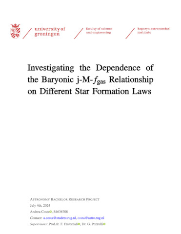Costa, Andrea (2024) Investigating the Dependence of the Baryonic j-M-f_gas Relationship on Different Star Formation Laws. Bachelor's Thesis, Astronomy.