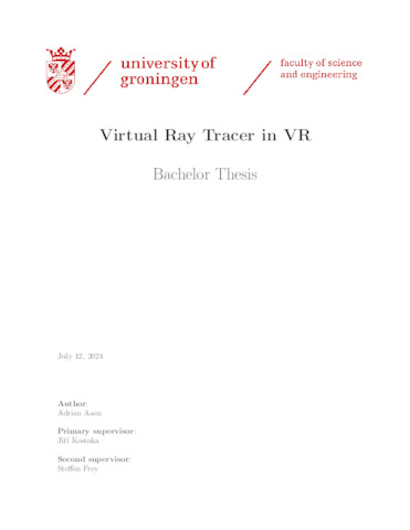 Aaen, Adrian (2024) Virtual Ray Tracer in VR. Bachelor's Thesis, Computing Science.