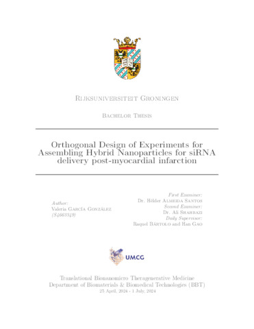 García Gonzaléz, Valeria (2024) Orthogonal Design of Experiments for Assembling Hybrid Nanoparticles for siRNA delivery post-myocardial infarction. Bachelor's Thesis, Biomedical Engineering.