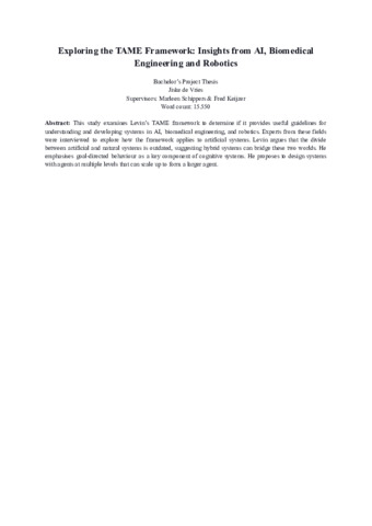 Vries, Jiske de (2024) Exploring the TAME Framework: Insights from AI, Robotics and Engineering. Bachelor's Thesis, Artificial Intelligence.