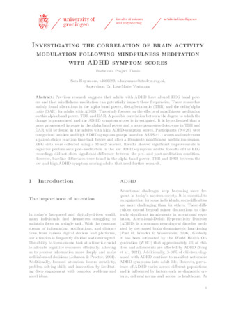 Huysmans, Sara (2024) Investigating the correlation of brain activity modulation following mindfulness meditation with ADHD symptom scores. Bachelor's Thesis, Artificial Intelligence.