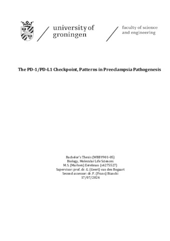 Eerelman, Marloes Susan (2024) The PD-1/PD-L1 Checkpoint, Patterns in Preeclampsia Pathogenesis. Bachelor's Thesis, Biology.