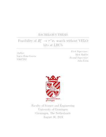 Peña García, Lucía (2024) Feasibility of Bc+ → tau+ nu_tau search without VELO hits at LHCb. Bachelor's Thesis, Physics.
