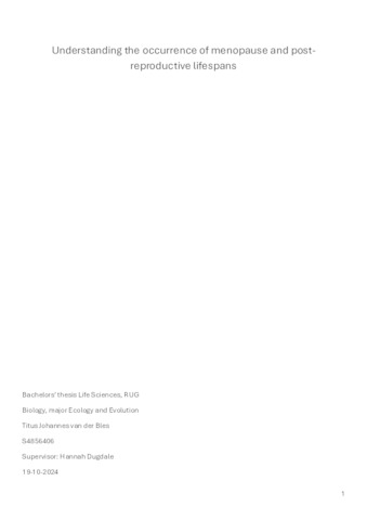 Bles, Titus J. van der (2024) Understanding the occurrence of menopause and post-reproductive lifespans. Bachelor's Thesis, Biology.
