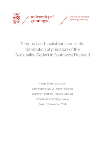 Zijlstra, Natsja (2025) Temporal and spatial variation in the distribution of predators of the Black-tailed Godwit in Southwest Friesland. Master's Research Project 2, Ecology and Evolution.