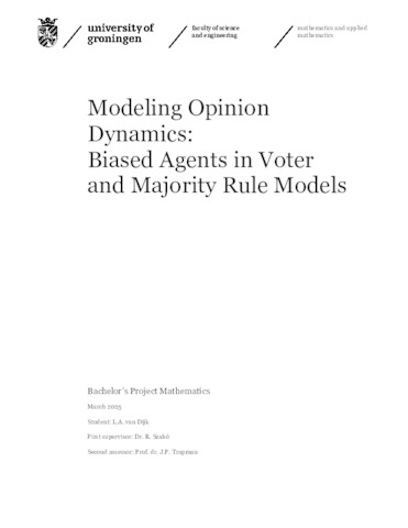 Dijk, Linda van (2025) Modeling Opinion Dynamics: Biased Agents in Voter and Majority Rule Models. Bachelor's Thesis, Mathematics.
