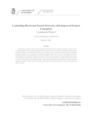Bervoets, Antoon (2025) Controlling Recurrent Neural Networks with Improved Feature Conceptors. Master's Thesis / Essay, Artificial Intelligence.