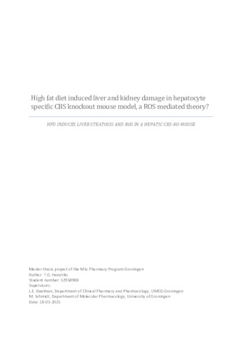 Hendriks, T.G. (2025) High fat diet induced liver and kidney damage in hepatocyte specific CBS knockout mouse model, a ROS mediated theory? Research Project, Pharmacy.