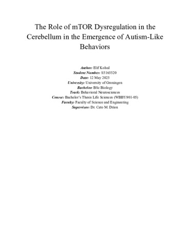 Kolsal, Elif (2025) The Role of mTOR Dysregulation in the Cerebellum in the Emergence of Autism-Like Behaviors. Bachelor's Thesis, Biology.