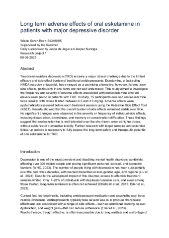 Boer, Wieke (2025) Long term adverse effects of oral esketamine in patients with major depressive disorder. Master's Research Project 1, Biomedical Sciences.