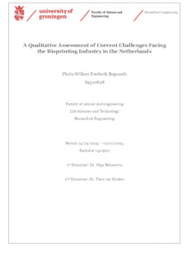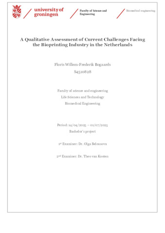 Bogaards, Floris (2025) Qualitative analysis of Commercial Viability of Bioprinting in the Context of Technical, Economic, and Regulatory Challenges in the Netherlands. Bachelor's Thesis, Life Science and Technology.