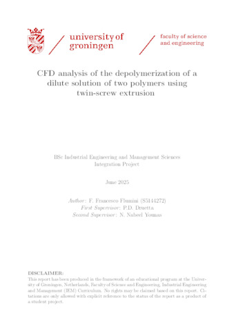 Flumini, Francesco (2025) CFD analysis of the depolymerization of a dilute solution of two polymers using twin-screw extrusion. Integration Project, Industrial Engineering and Management.