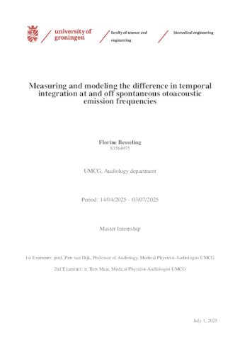 Besseling, Florine (2025) Measuring and modeling the difference in temporal integration at and off spontaneous otoacoustic emission frequencies. Master's Internship Report, Biomedical Engineering.