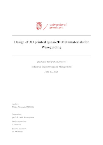 Westra, Minke (2025) Design of 3D printed quasi-2D Metamaterials for Waveguiding. Integration Project, Industrial Engineering and Management.
