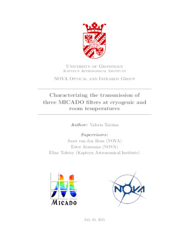Tarsina, Valeria (2025) Characterizing the transmission of three MICADO filters at cryogenic and room temperatures. Bachelor's Thesis, Astronomy.