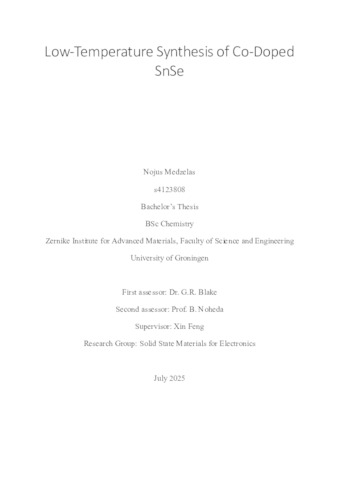 Medzelas, Nojus (2025) Low-Temperature Synthesis of Co-Doped SnSe. Bachelor's Thesis, Chemistry.