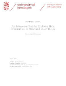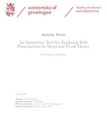 Lantinga, Scott (2025) An Interactive Tool for Exploring Rule Permutations in Structural Proof Theory. Bachelor's Thesis, Computing Science.