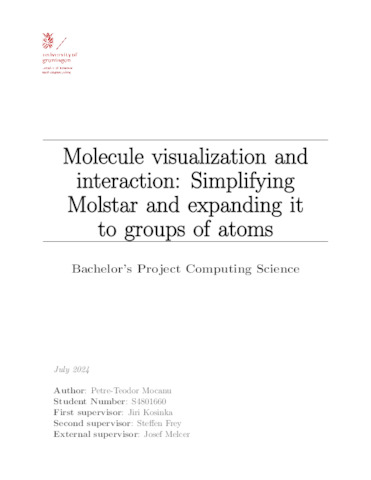 Mocanu, Petre-Teodor (2025) Molecule visualization and interaction: Simplifying Molstar and expanding it to groups of atoms. Bachelor's Thesis, Computing Science.
