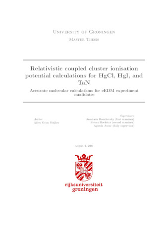 Strijker, Aiden (2025) Relativistic coupled cluster ionisation potential calculations for HgCl, HgI, and TaN. Master's Thesis / Essay, Physics.