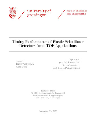 Wijnsema, Rutger (2025) Timing Performance of Plastic Scintillator Detectors for n_TOF Applications. Bachelor's Thesis, Applied Physics.