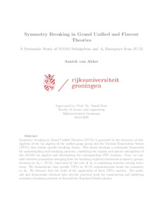 Akker, Annick van (2025) Symmetry Breaking in Grand Unified and Flavour Theories: A Systematic Study of SO(10) Subalgebras and A4 Emergence from SU(3). Master's Thesis / Essay, Physics.